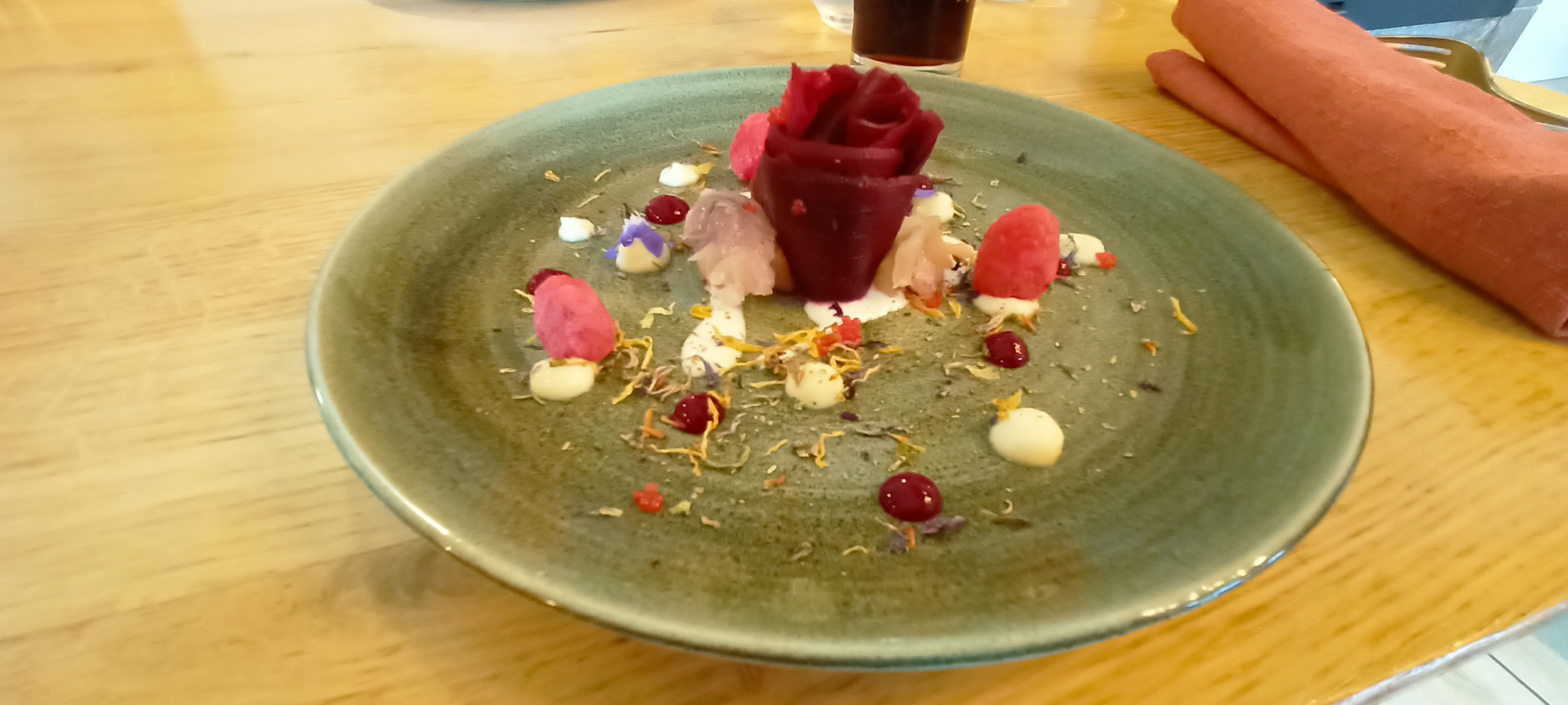 Magnifique surprise pour les yeux et pour les papilles!!! J ai rarement ressenti des émotions culinaires et là c est le cas! Un grand bravo à toute l'équipe et particulièrement à la gentille serveuse qui nous a servi avec tout son professionalisme et sa bonne humeur!! Aucune inquiétude à avoir si vous hésitez!!! Une magnifique experience.