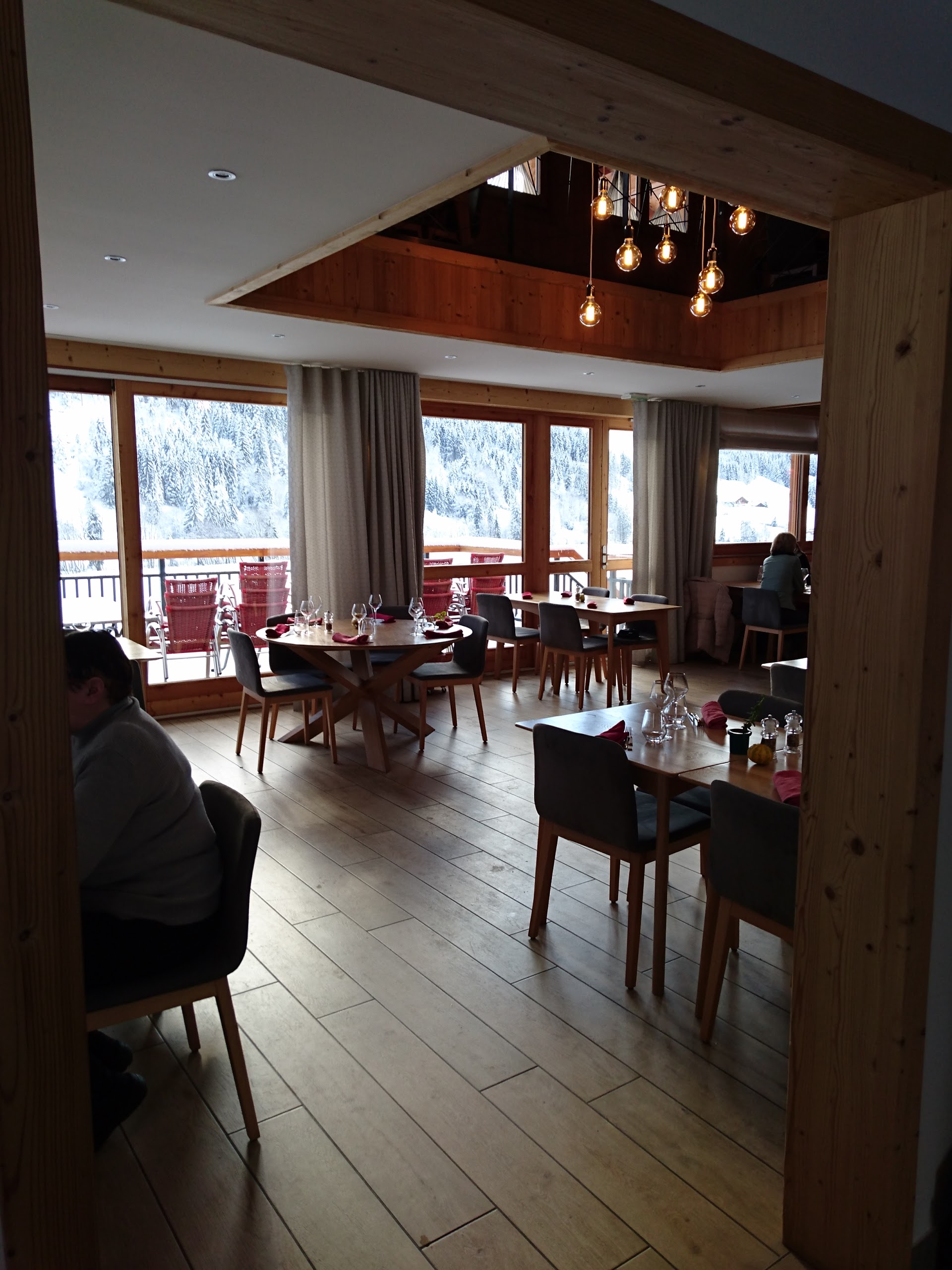 Cadre du restaurant très sympa, superbe vue sur la piste de ski de et des chiens de traîneau. Excellent rapport qualité-prix, beaucoup de recherche dans les présentations d'assiettes et dans les saveurs. Fondue savoyarde succulente. Serveuse très aimable et souriante. Je vous le recommande ! Seul petit bémol, de l'air passait sous la fenêtre (dans salle, à gauche)....