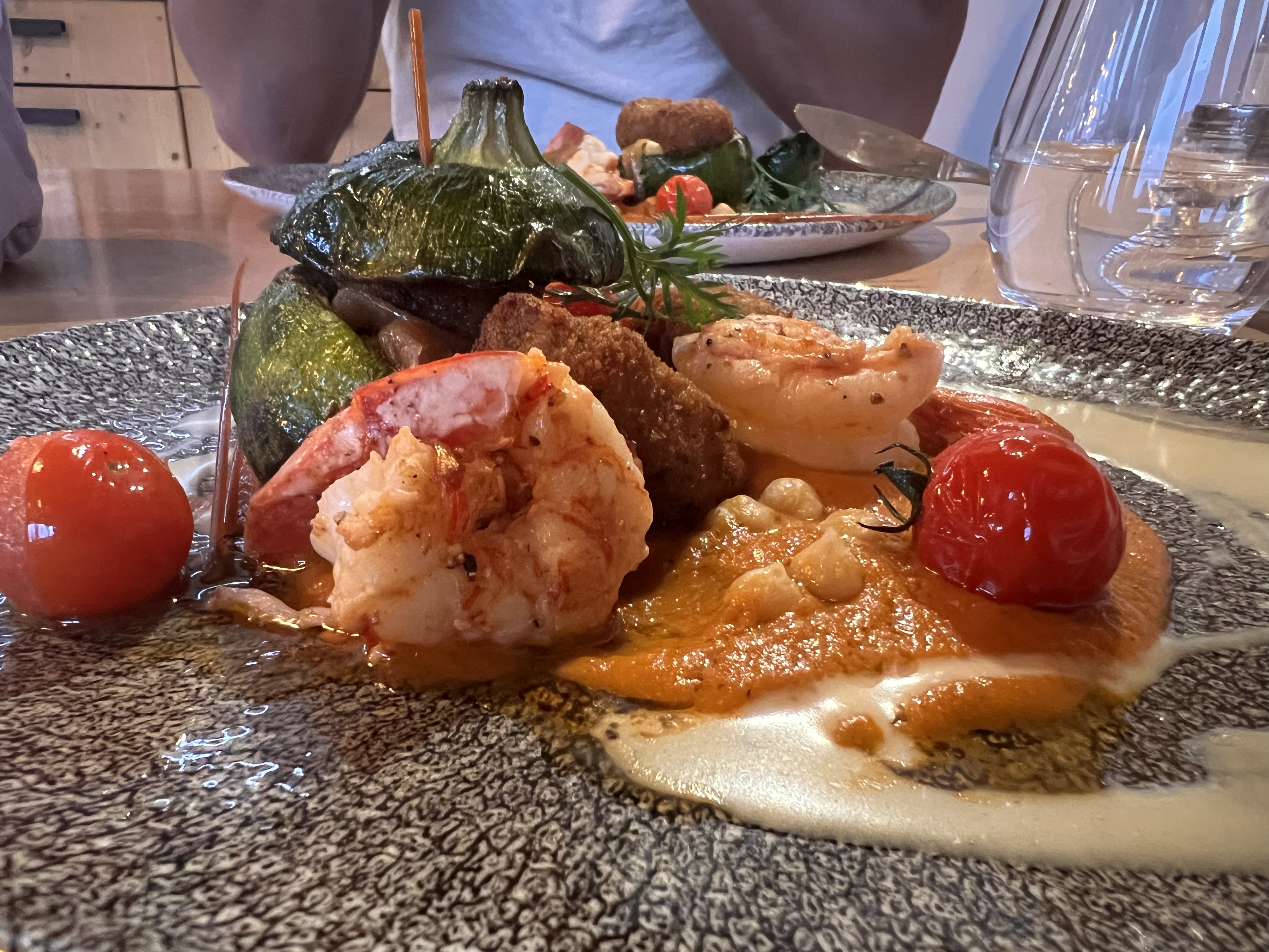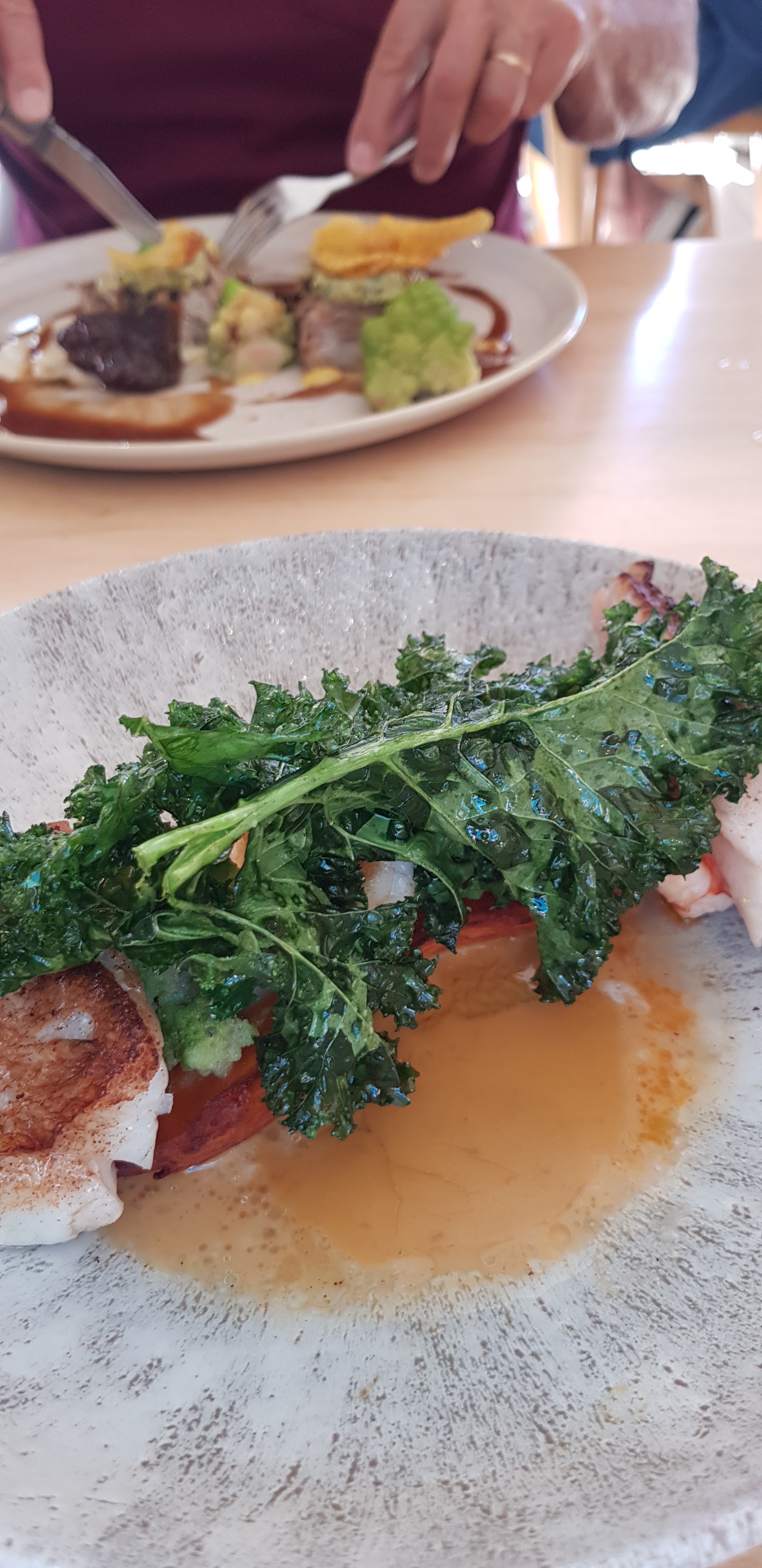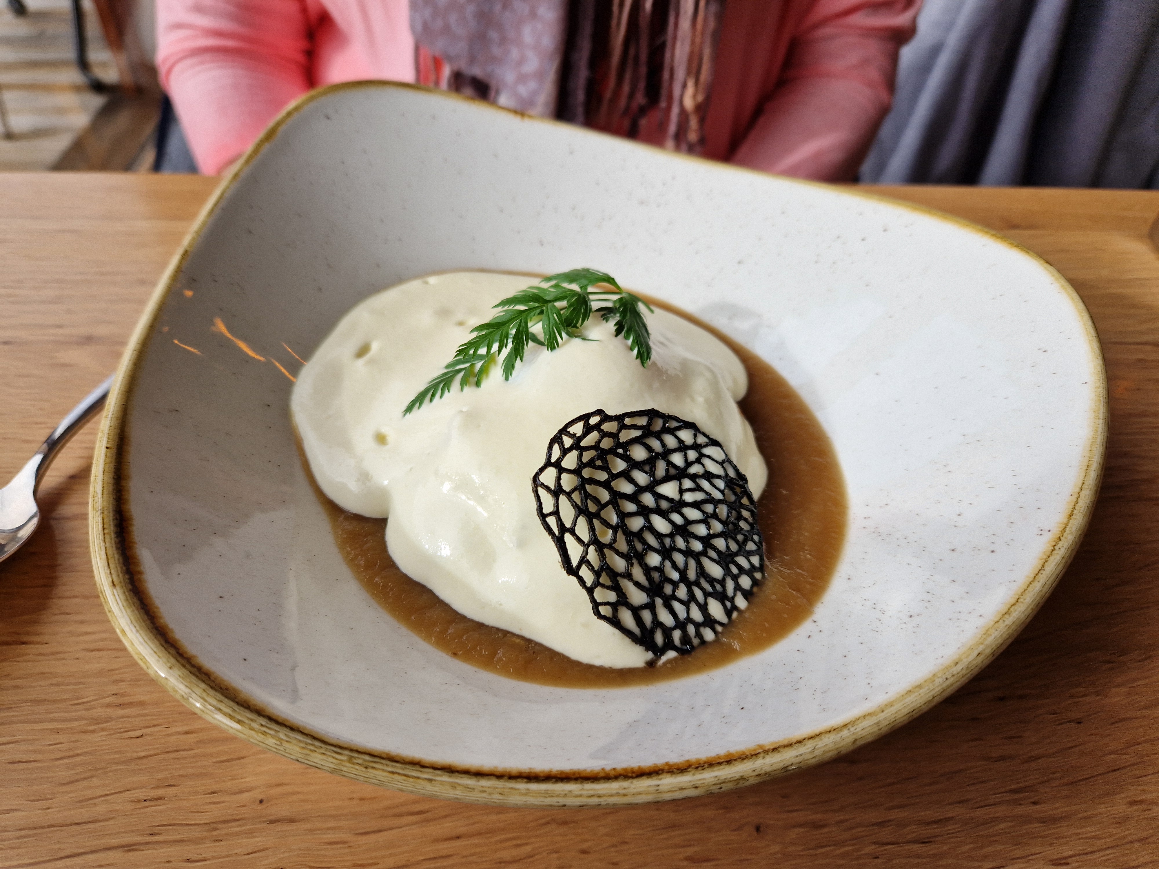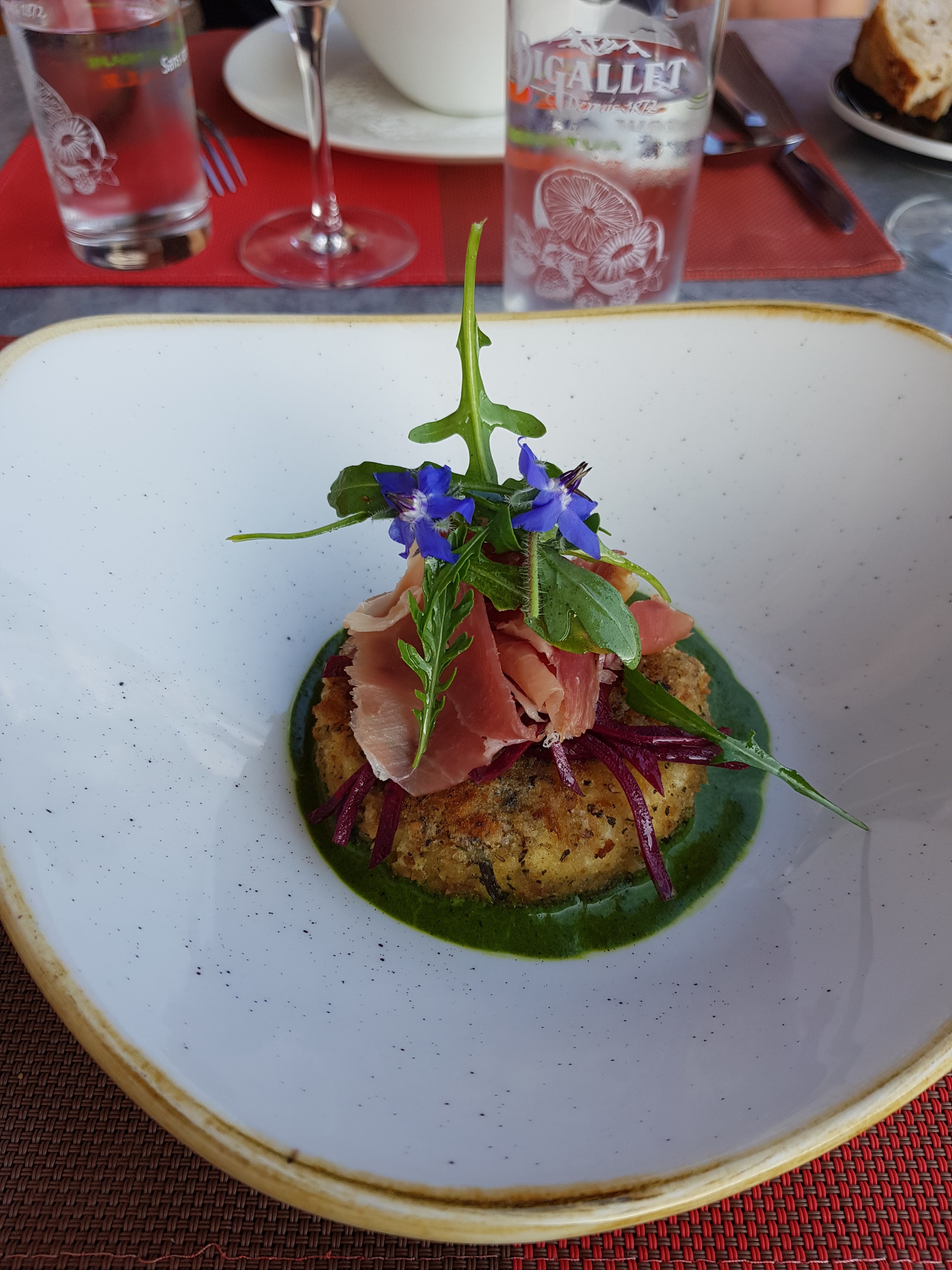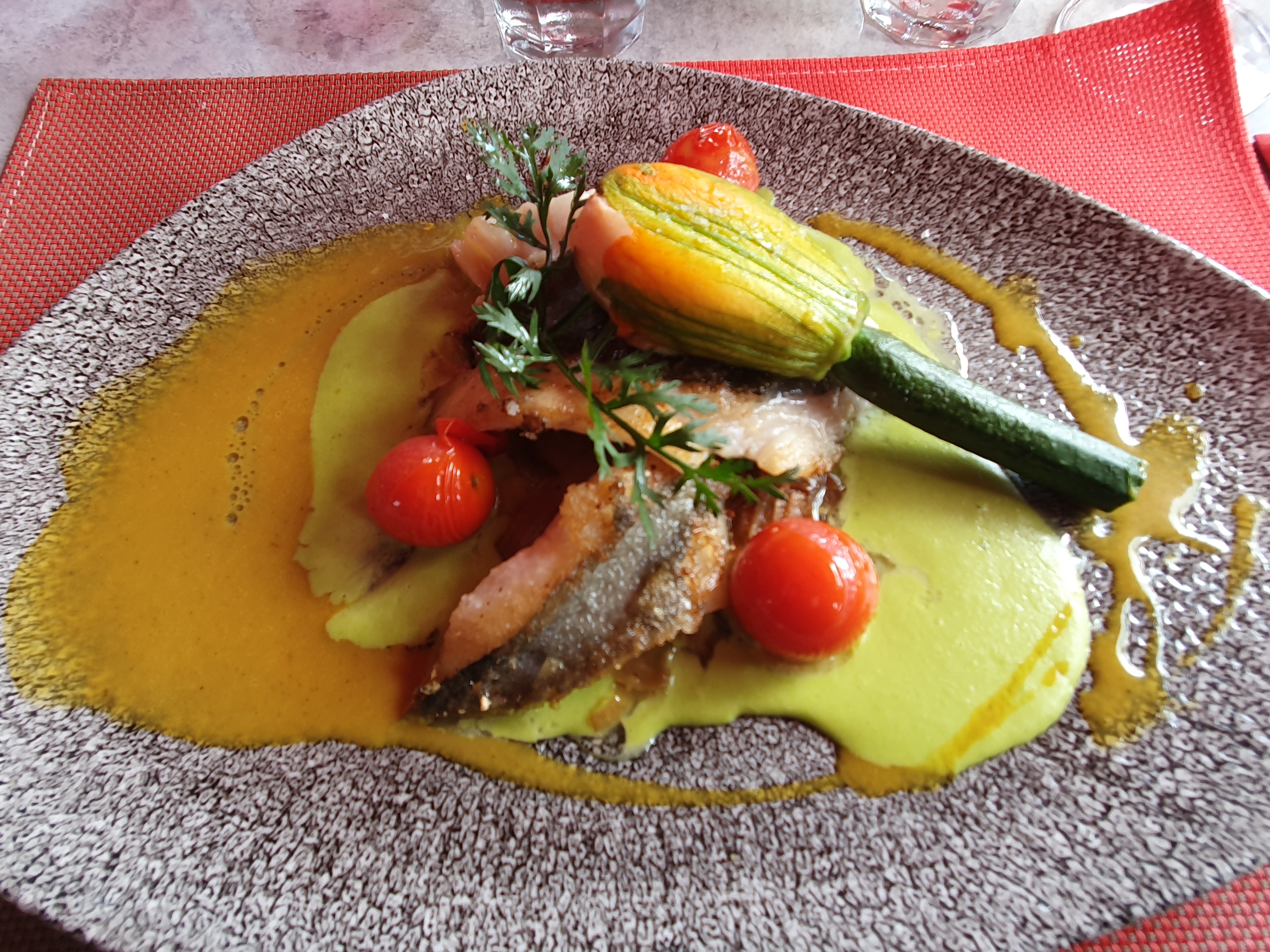 Cuisine excellente, plats très raffinés. Dommage de n’avoir pu déjeuner sur la terrasse par manque de parasol, le soleil chauffait dur ce jour là et à l’intérieur nous étions dans les courants d’air ! Vraiment dommage !