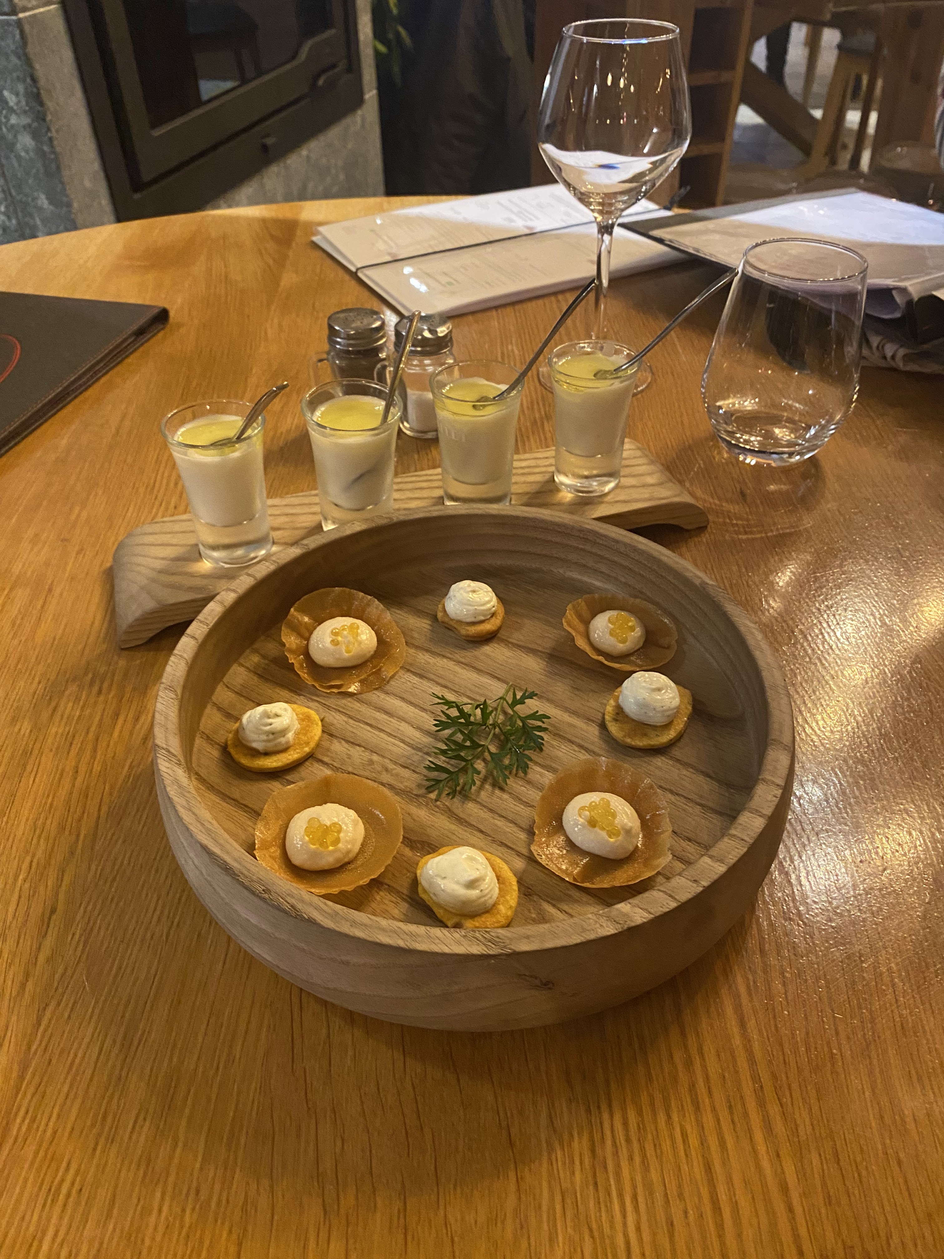 Très joli endroit où la présentation des menus et des desserts donne l'eau à la bouche. Service impeccable. Le vin se mariait bien avec le repas. Et on a même eu droit à un génépi et un limoncello en partant.