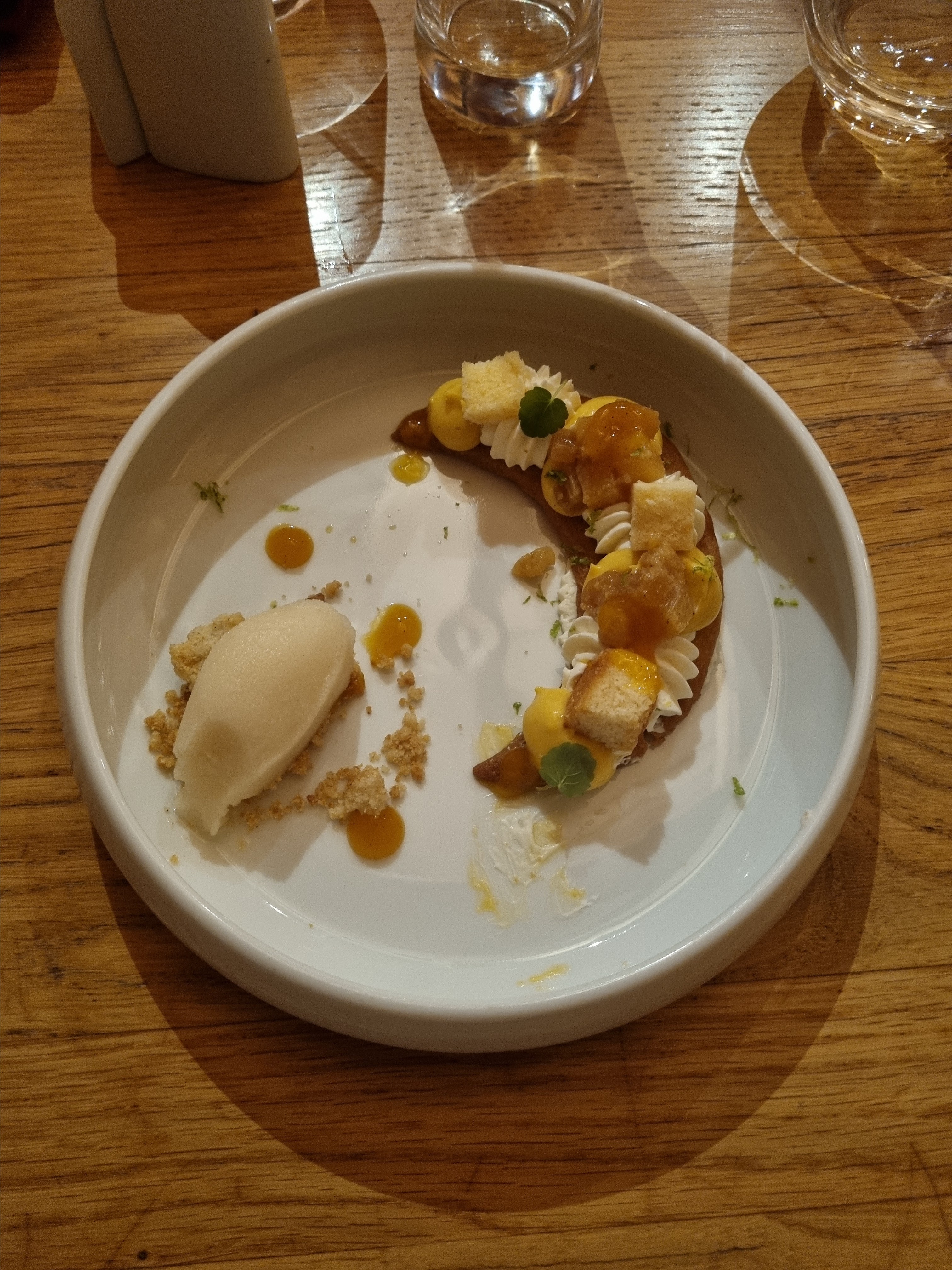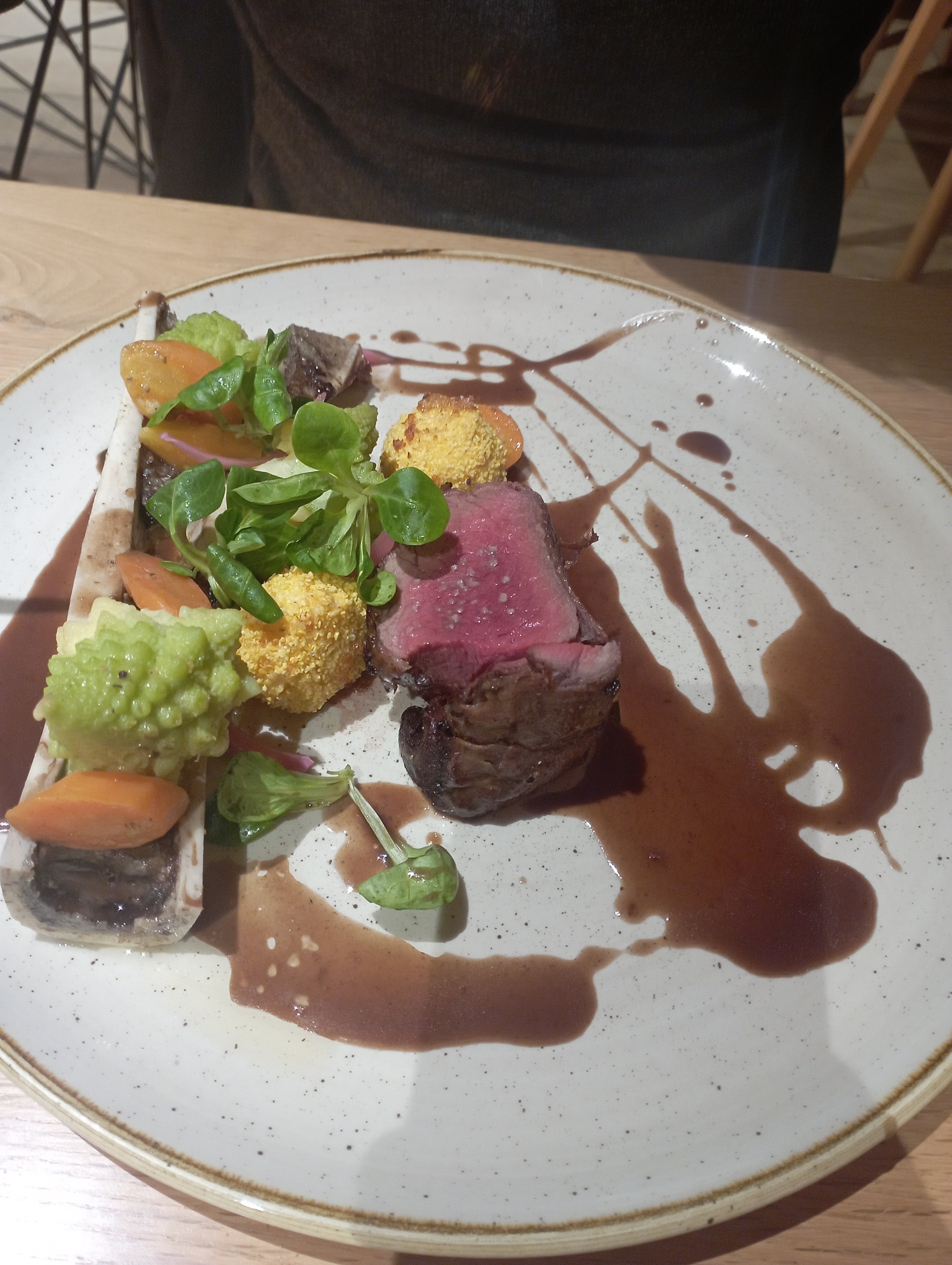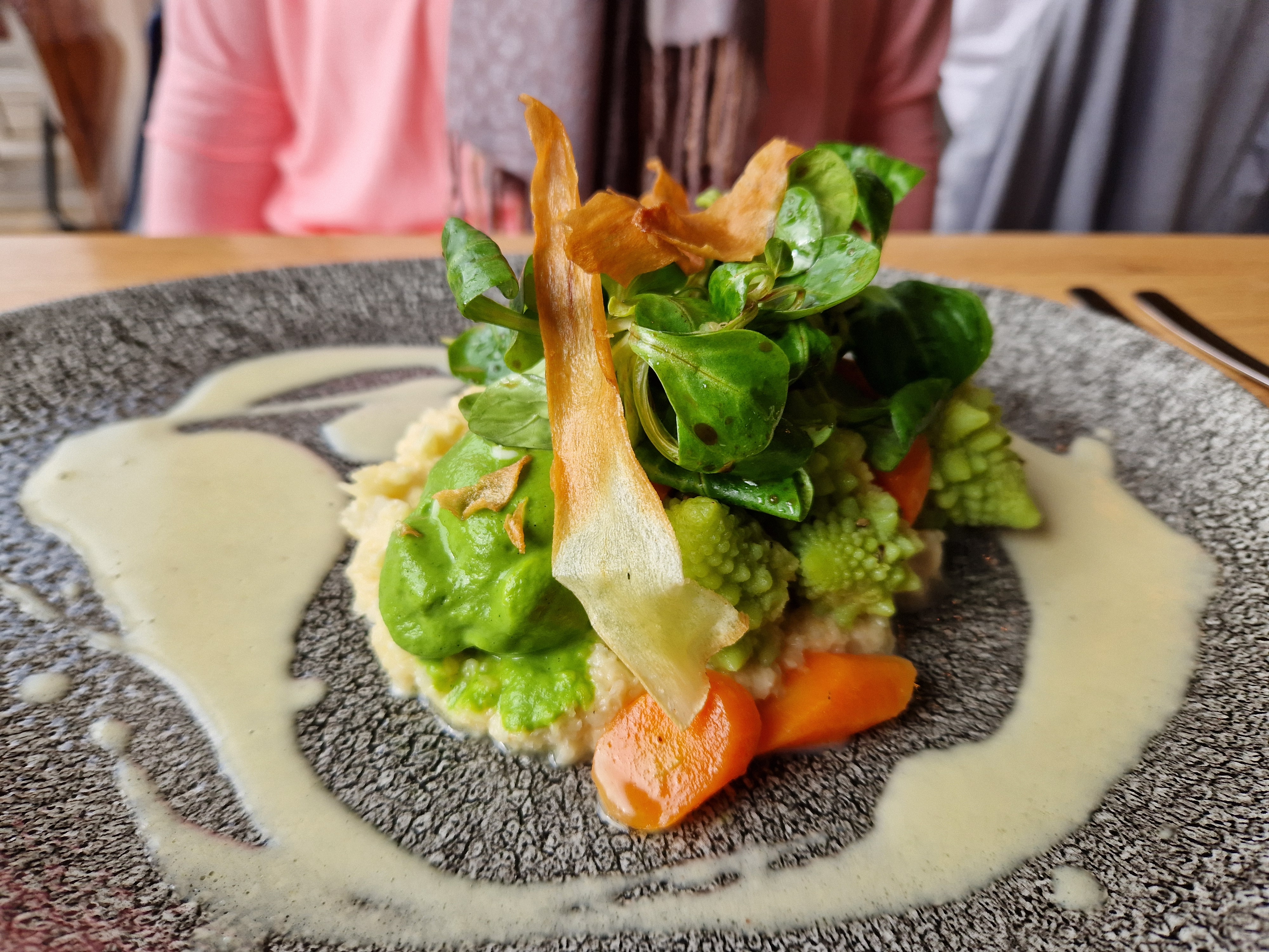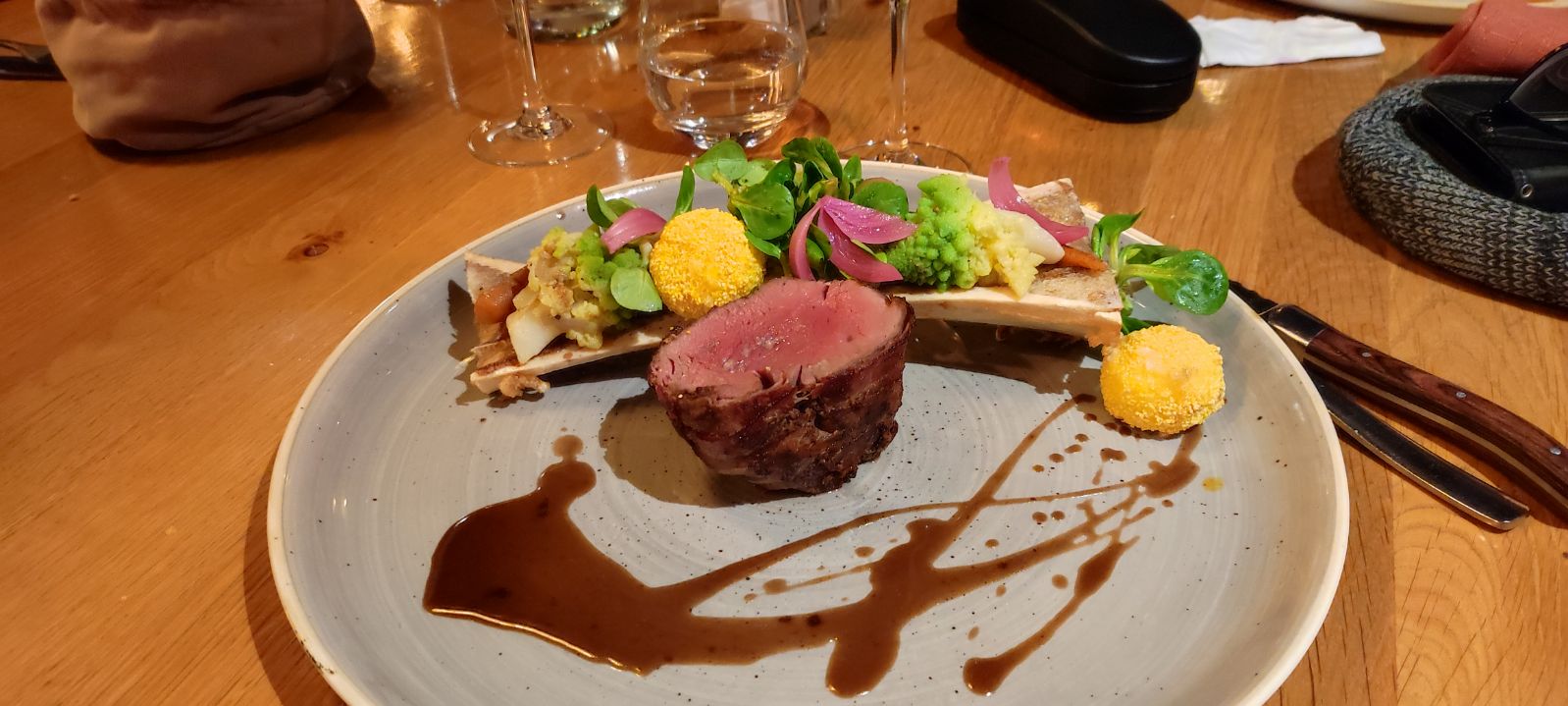 Menu raffiné avec de belles associations de saveurs, service chaleureux et rapide