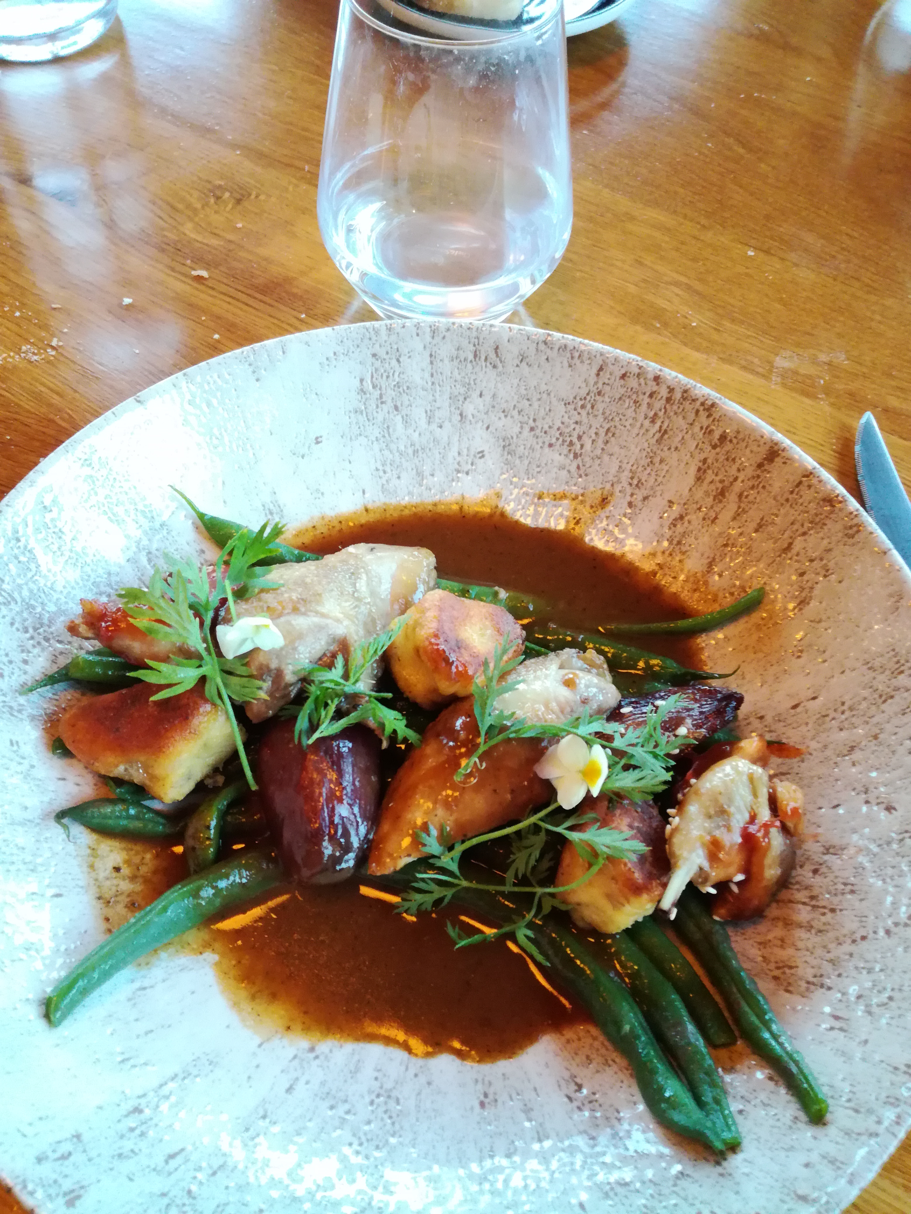 Bel endroit, avec une très bonne cuisine et de qualité... mais Le service lui, est décevant. Dommage tout d'abord d'avoir été très mal accueilli par cette jeune serveuse, qui, étant très empressée de prendre notre apéro a mal pris le fait qu'on lui demande la carte pour qu'on prenne le temps de choisir. Puis tout au long du repas, le serveur fait ressentir qu'il est débordé. Nous avions parfois pas le temps de poser une question, qu'il était déjà parti. Pour finir, le verre de vin est à 11 euros... très excessif