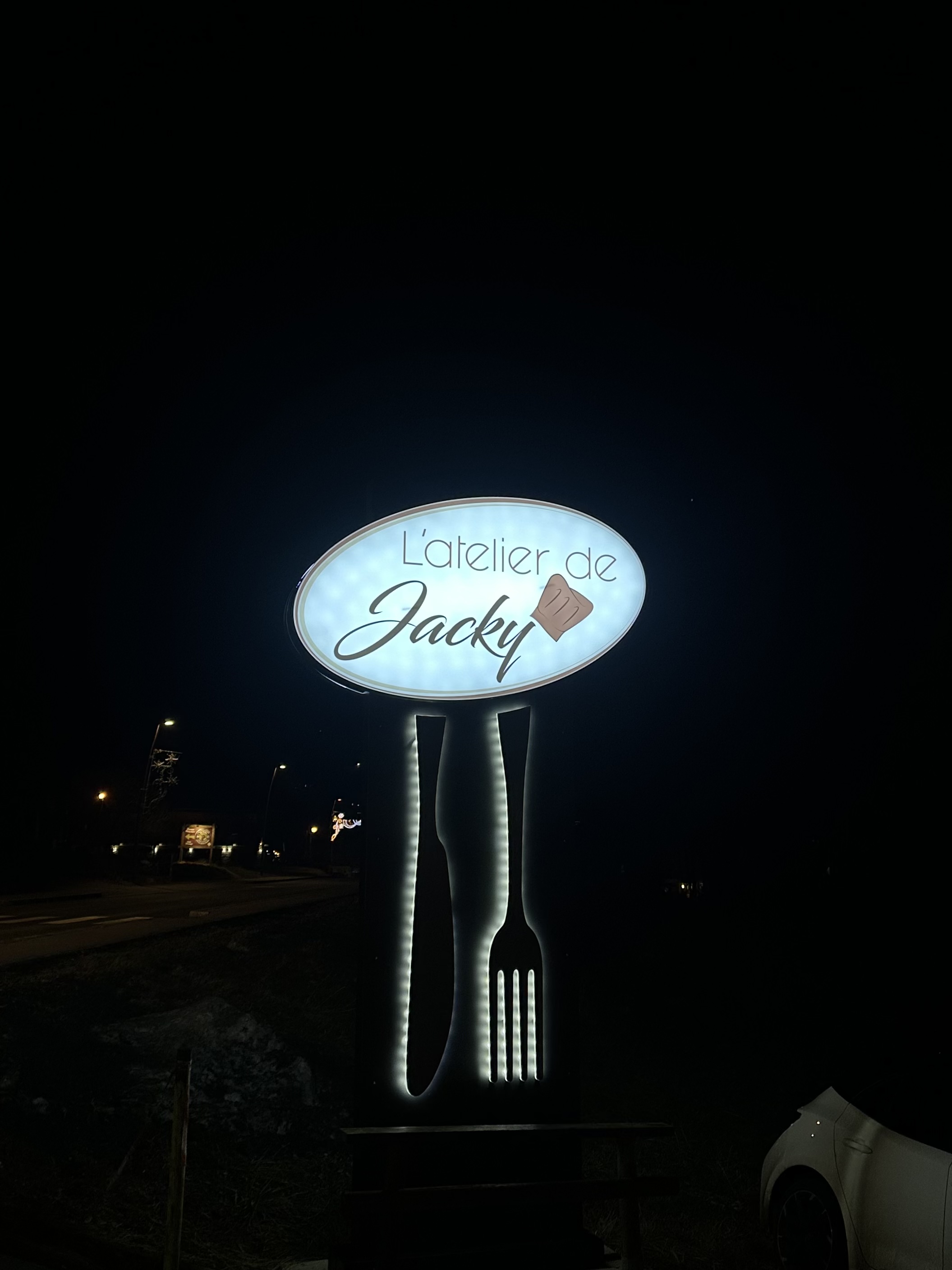 Ouah et encore ouah, enfin un bon resto. Un accueil sympathique dans une ambiance épurée. Des amuses bouches qui annoncent votre repas. Tout juste, c'est superbe. Je regarde les assiettes qui arrivent sur les tables voisines, toutes vous donnent envie. Tout est dressé avec goût, ça nous change de la demi tomate pas mûre et du brin de persil. Je suis maître artisan boulanger pâtissier, à chaque fois que je vais au restaurant je ne prend plus de desserts, (trop de déception 😞) Mais à l'atelier de Jackie je n'ai pas pu résister. Même le dessert était délicieux et coloré. C'était un sans faute je reviens vendredi. Merci pour cette cuisine passionnée, et pour le professionnalisme des serveuses. 😉
