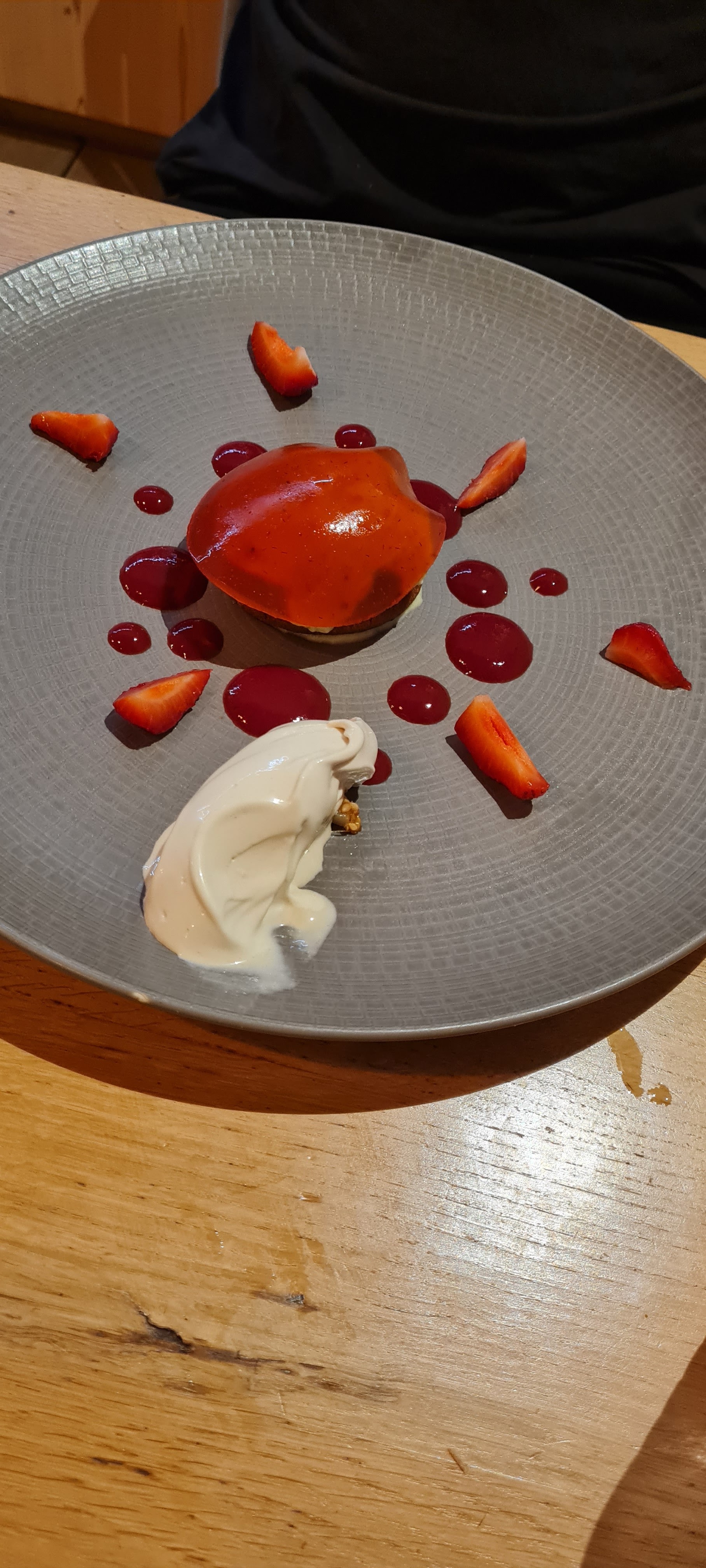 Lieu très agréable, beau chalet, déco moderne sympa. Jacky est un chef très agréable, créatif, belles associations gustatives et visuelles. Plateau de fromages exceptionnel. Nous avons été très bien servi, sourire,efficacité,amabilité+++ Que du plaisir. Faite une pose chez Jacky. Je vous le recommande.