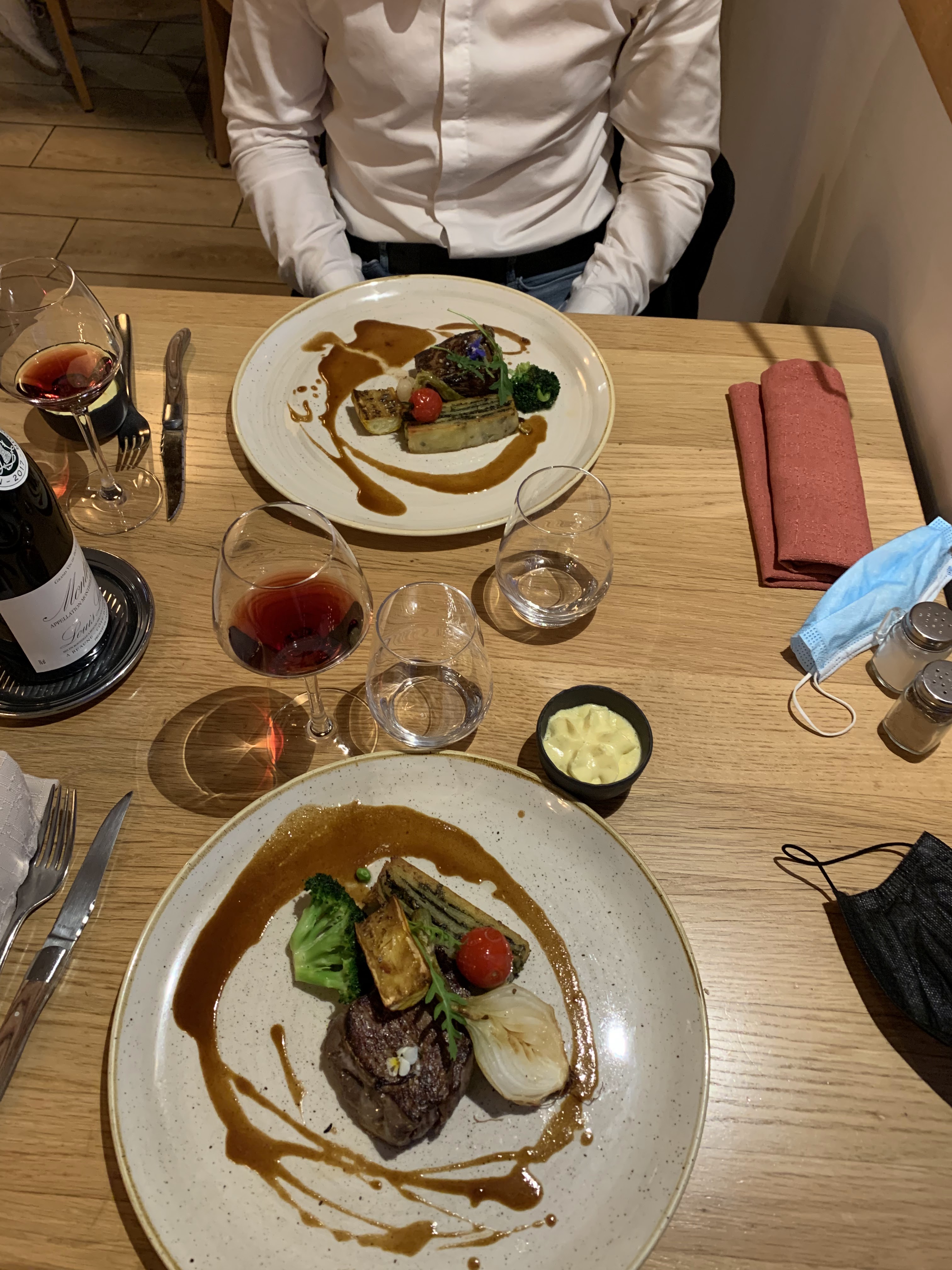 Repas excellent et de qualité, rapport qualité/prix raisonnable. Je trouve dommage le fait de ne pas voir le plateau de fromage lorsque l'on est en terrasse. Les serveurs sont froids et expéditifs