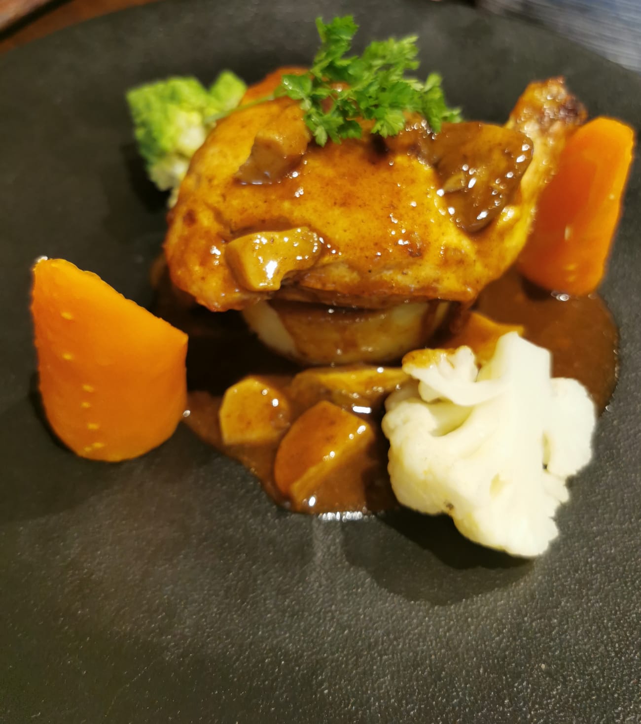 Plat joliment préparé et présenté Cuisine plutôt simple mais efficace Restaurant recommandé