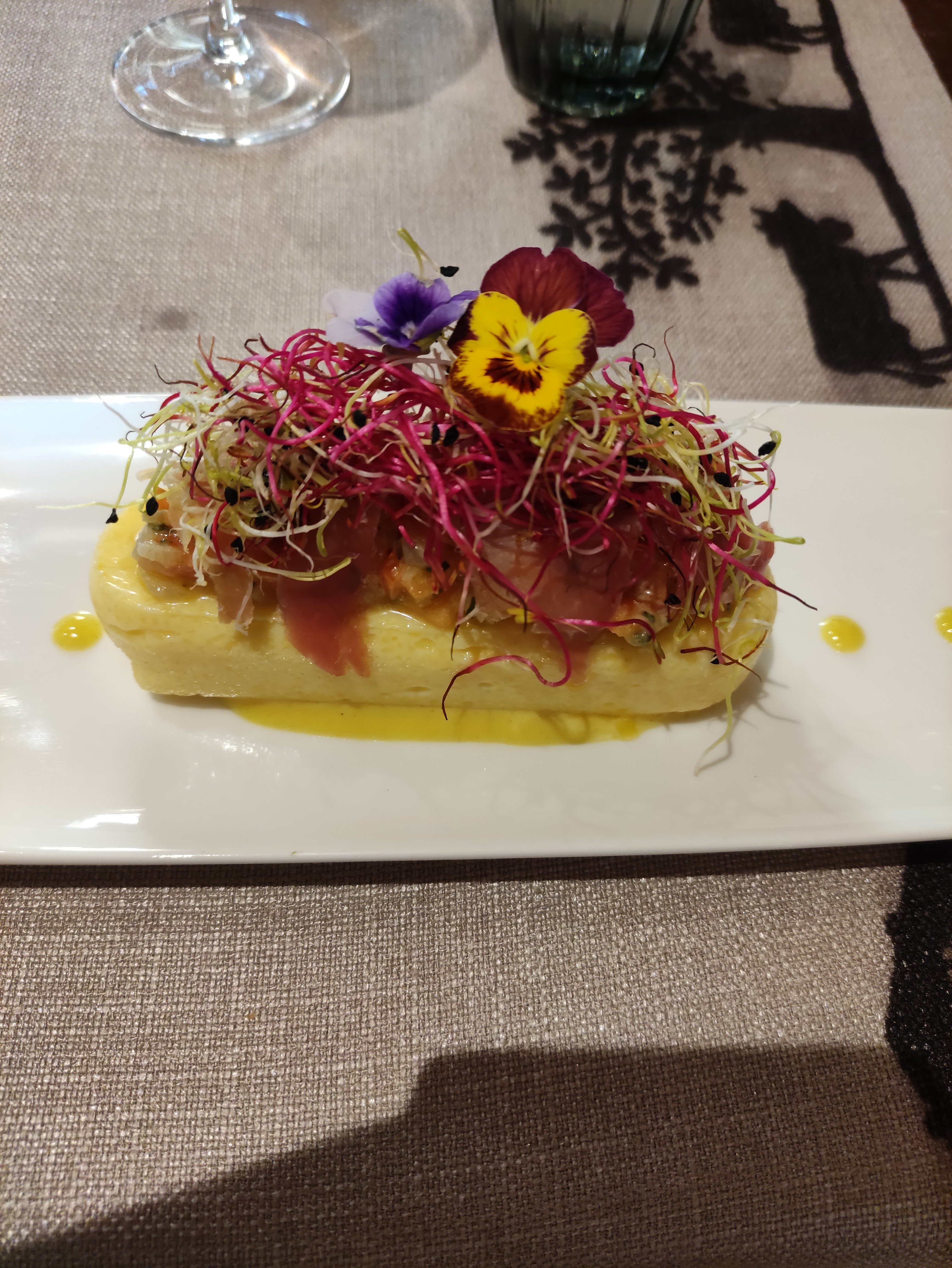La cuisine était très bonne et raffinée. Quelque fausse notes dans le service on un peu ternie l'expérience.