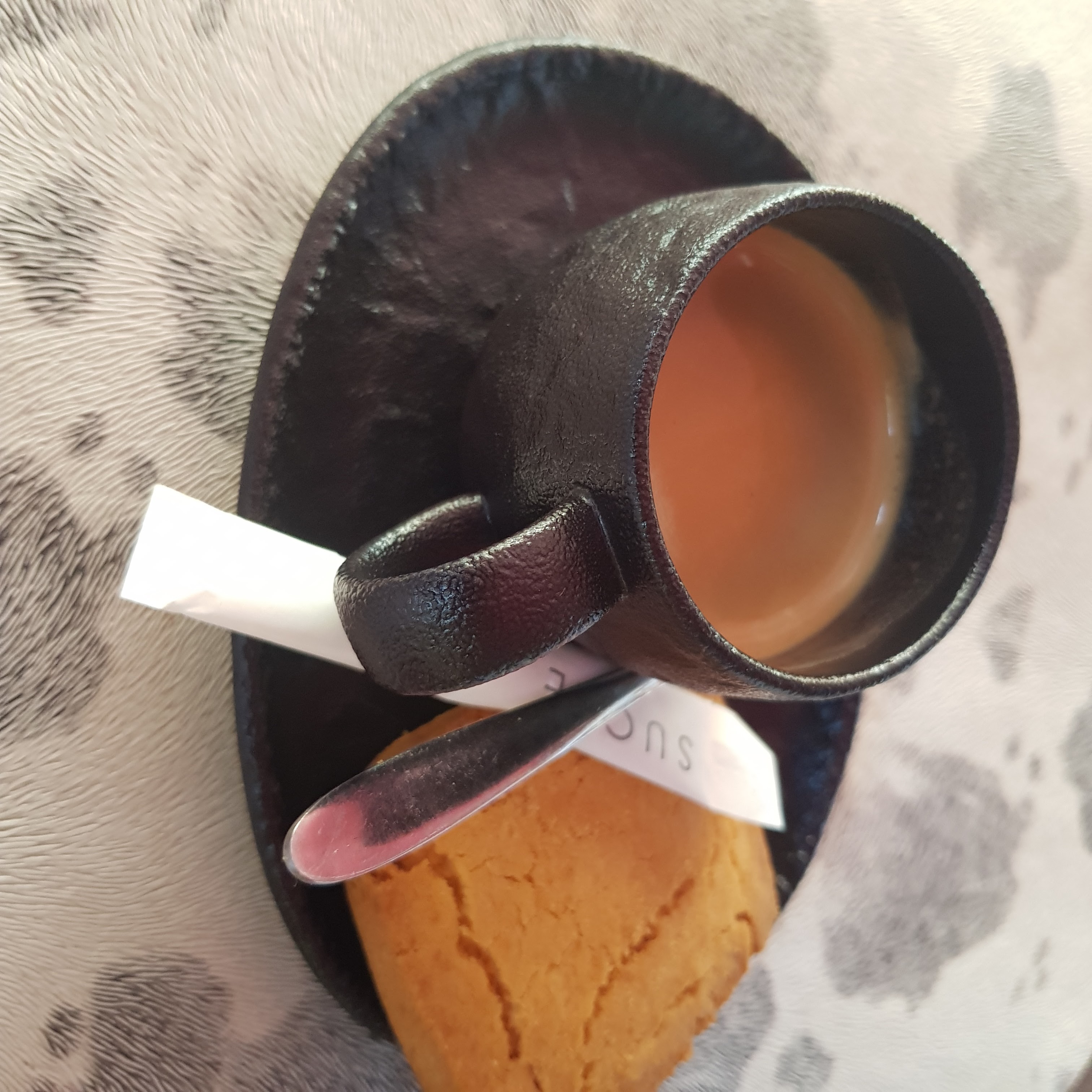 Terrasse agréable et délicieux café à tarif honnête pour la région.