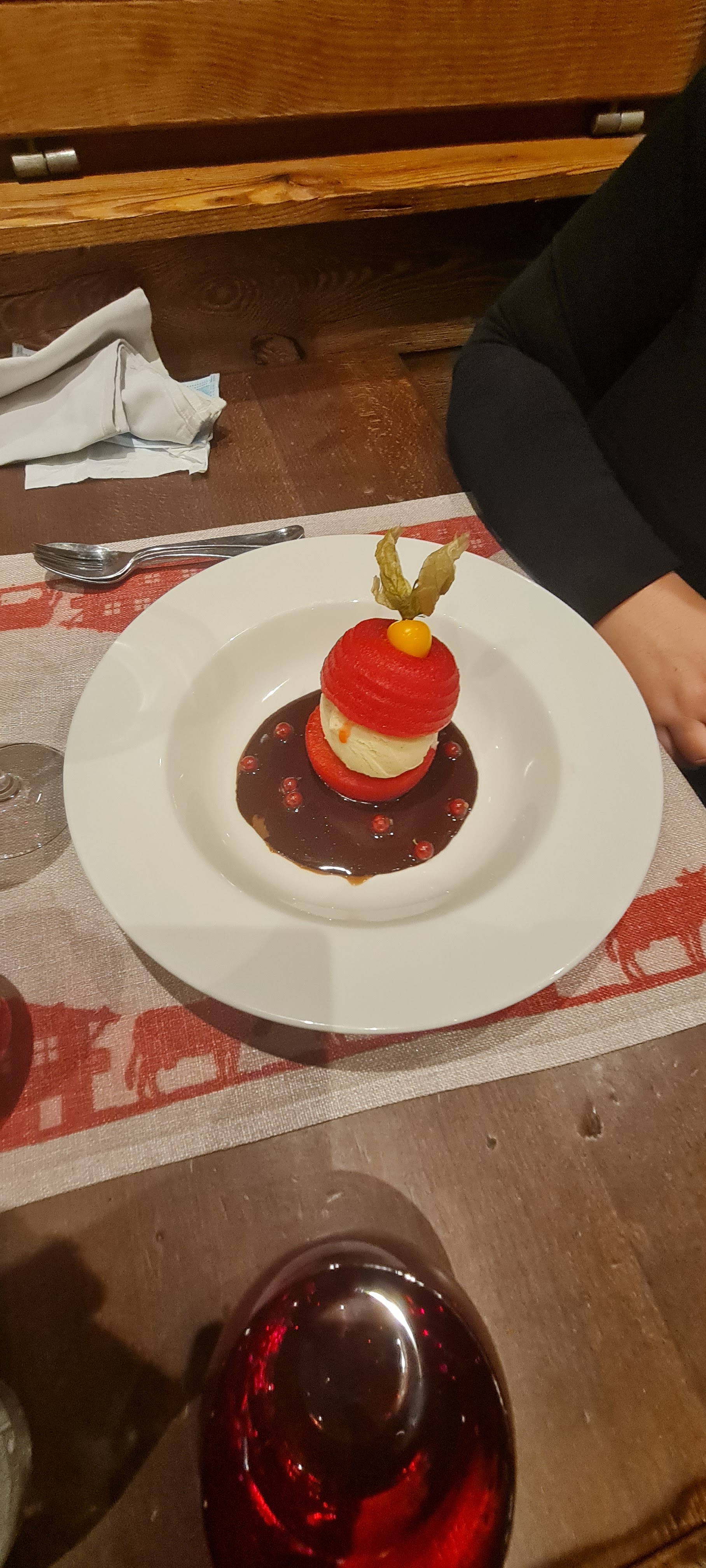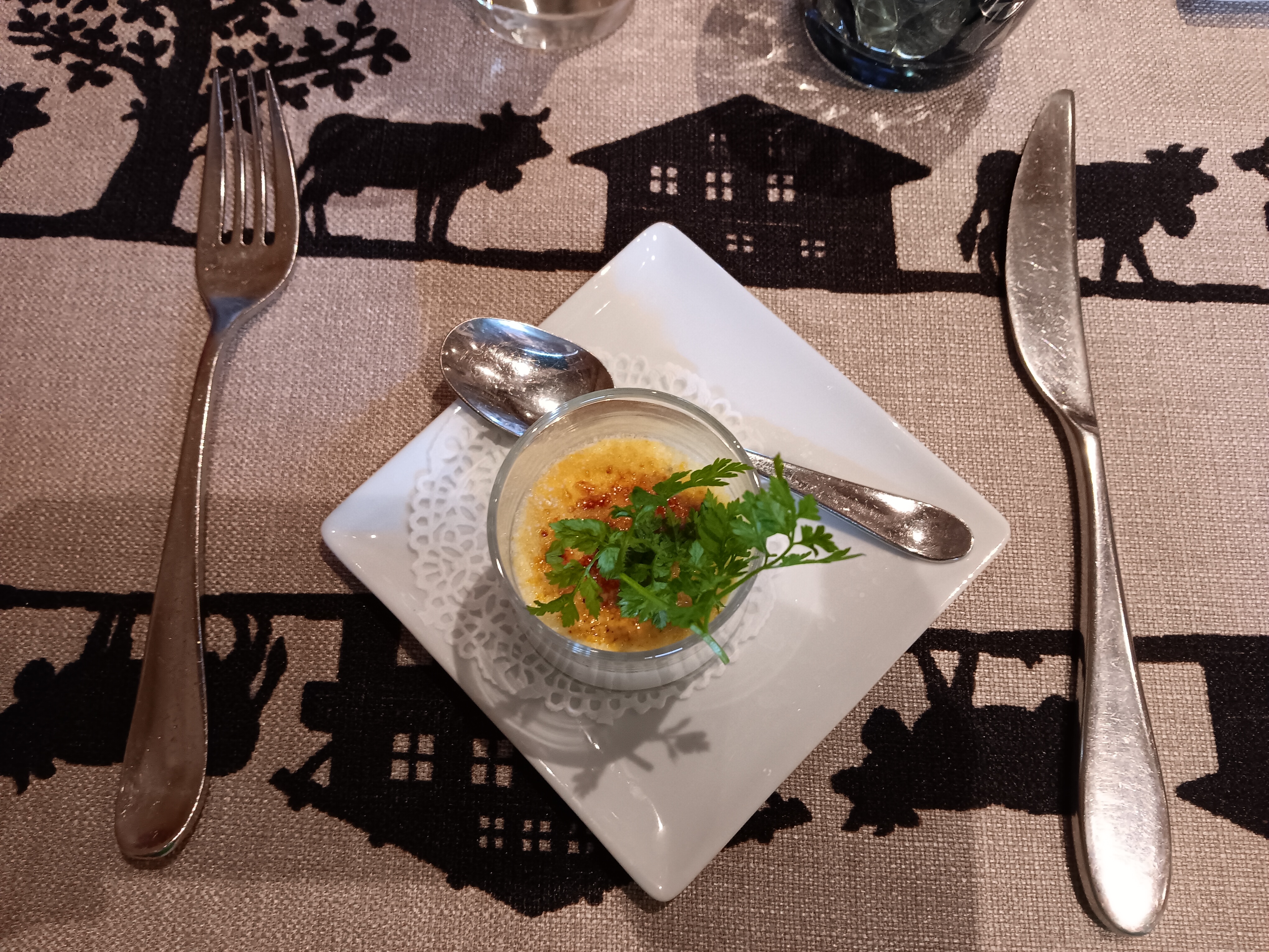 Sercice au top , impeccable. Nourriture très bonne. On avait choisis les menu du jour. On était 3 et on a commende 3 menus du jour différentes ( entrée, plat , dessert).Repas gastronomique mais la quantité est très responsable, bien assaisonné et chaud.Deco de montagne au petit détails. La vaisselle, les set de table et même le petit détail avec l'addiction dans un seau à lait on plonge dans l'univers de la montagne. Prix raisonnable. Je retourne volontier.