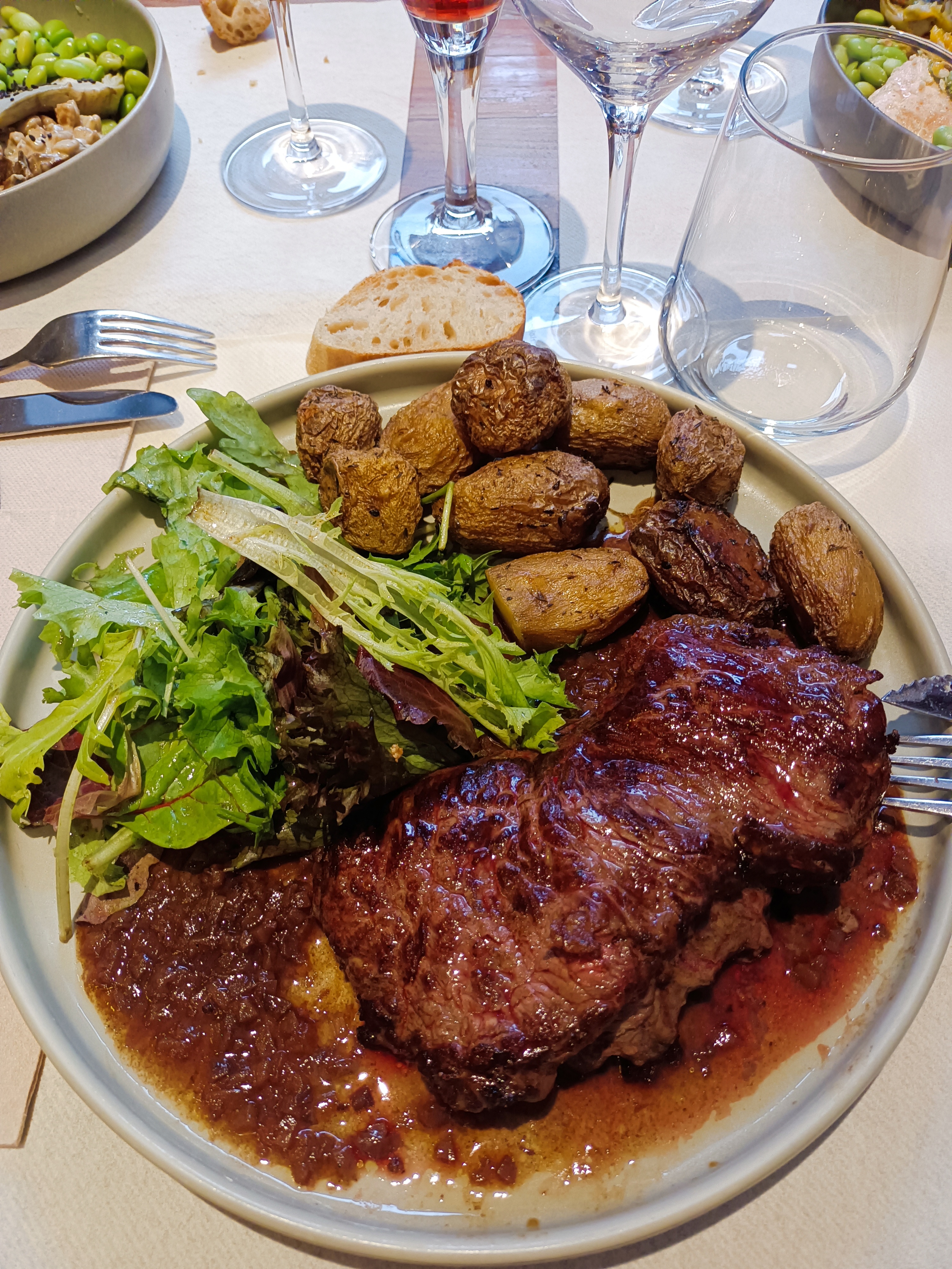 Arrivés tardivement, nous avons été acceptés avec gentillesse, et merci à ce retard ! Nous avons savouré un excellent faux filet régional, et les desserts étaient sympa.
