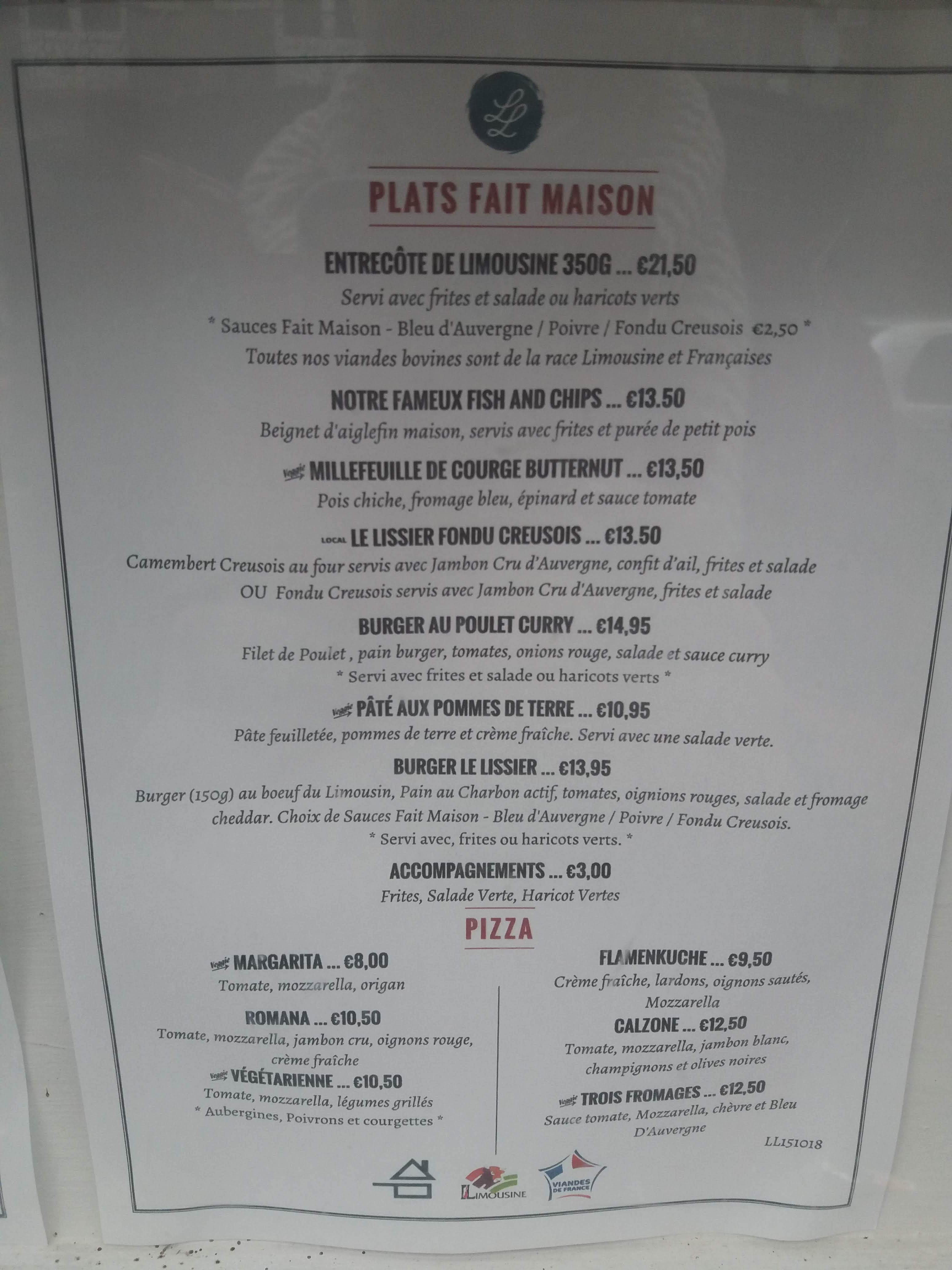 Venant du Puy-de-Dôme et allant sur Limoges, nous cherchions un restaurant pour déjeuner. La plupart étant fermés un 1er janvier, nous avons eu la chance de découvrir Le Lissier. Tout y est parfait. La saveur, la présentation des plats, l'accueil... Bref une belle découverte due au hasard. Nous recommandons...
