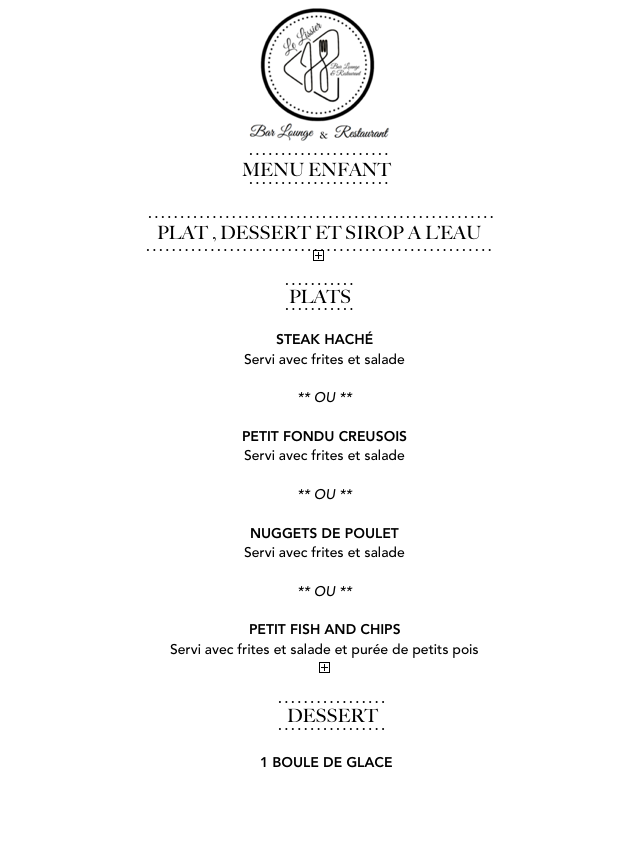 - ✔️ Menu enfant