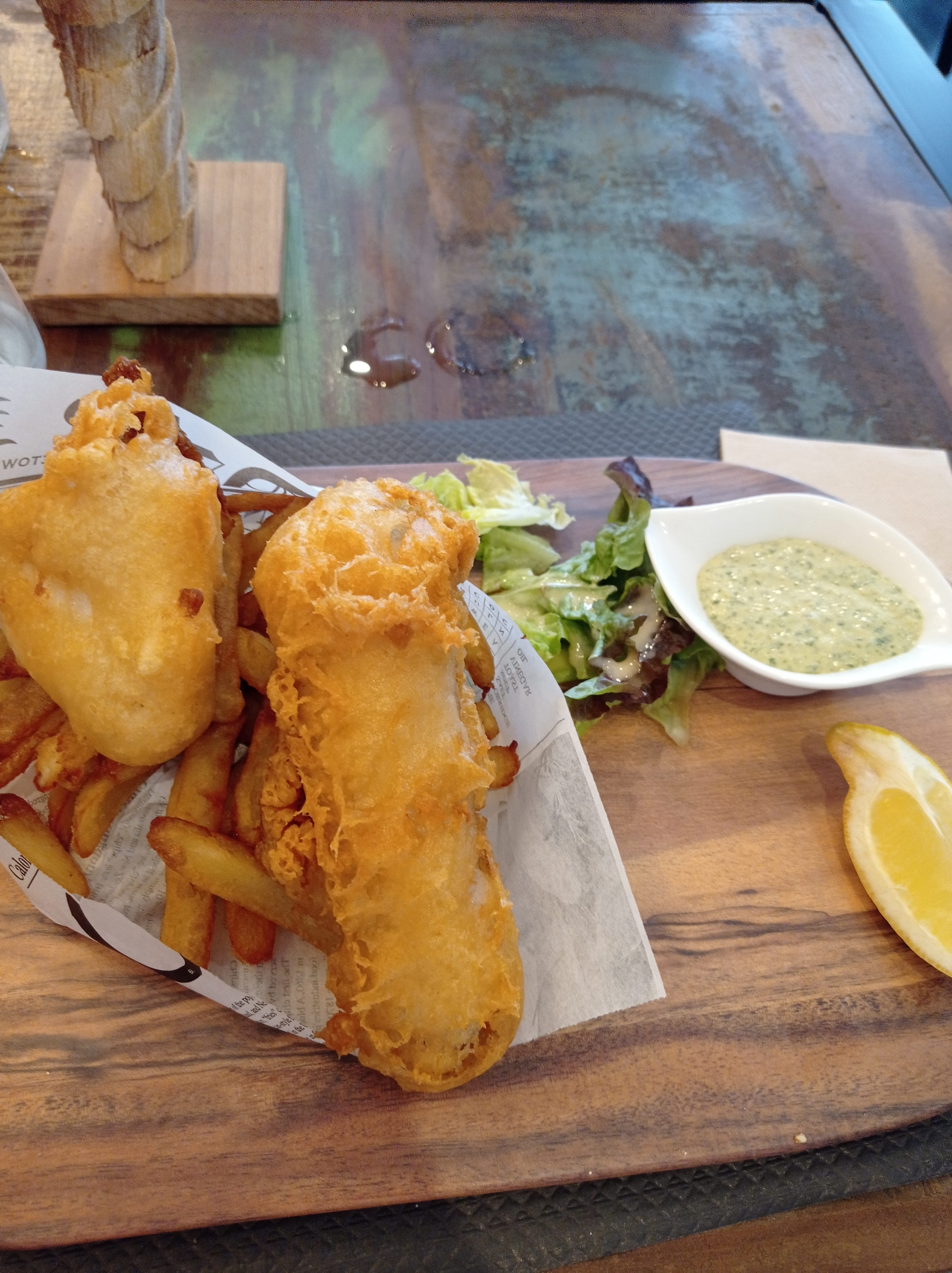 Très bon moment ! Fish and chips copieux peut-être trop ! Personnel très aimable qui a tjs le sourire. Dans cette commune triste, un passage dans ce resto donne du baume au coeur ! !!