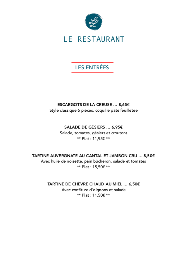 Très bonne cuisine La carte change assez souvent et il y a des plats du jour poir varier Les propriétaires sont sympas et la terrasse est très chouette en été Facile de se garer pas loin Vraiment une bonne adresse à Aubusson poir manger rapidement pi poir profiter d'un moment plus long entre collègues ou en famille Petit bémol sur les prix un peu élevés maos on passe tellement un bon moment et on y mange tellement bien que l'on ne s'arrête pas plus sur ce sujet