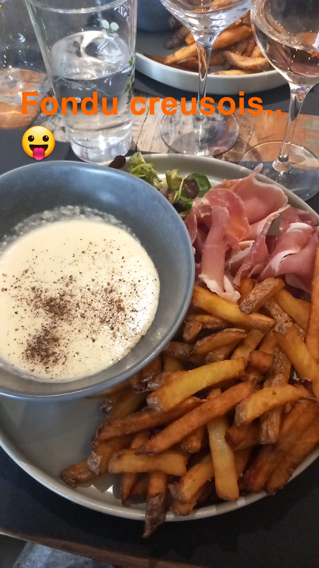 Fondu creusoit avec frites maison et profiterole, tres bon repas