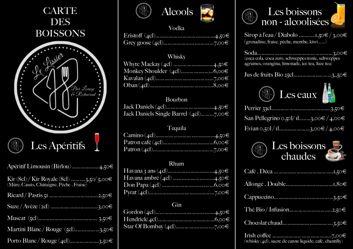 - ✔️ Cocktails et apéritifs