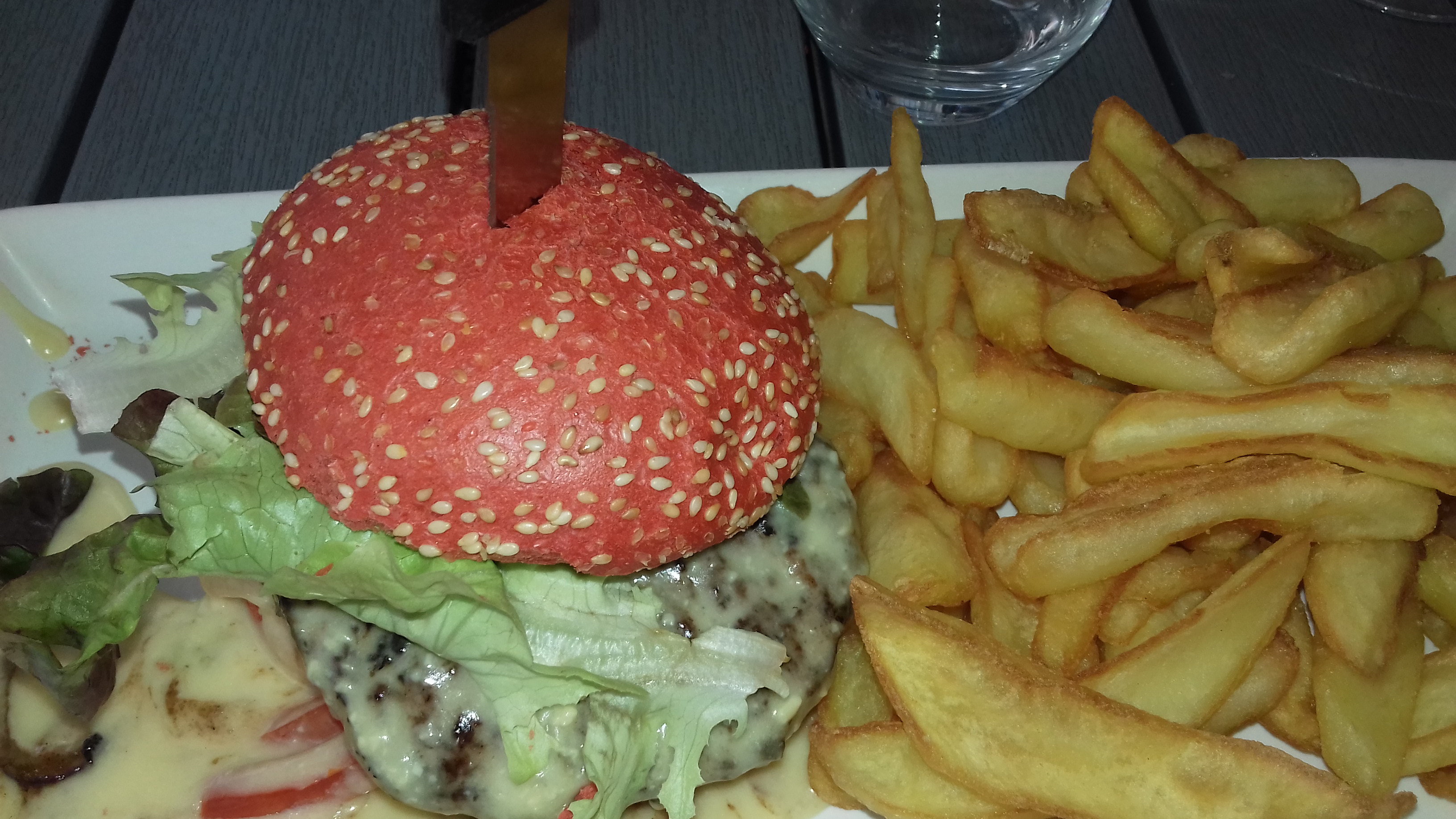 Une chance, nous avons pu y déjeuner ! Burgers pour les enfants, très copieux.